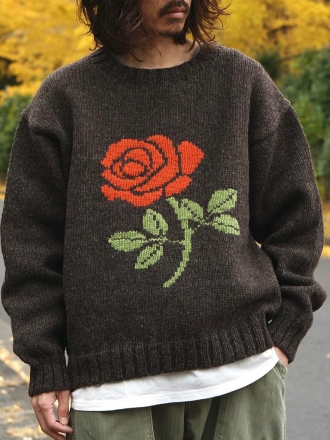 【HAVE A GRATEFUL DAY】Rose Knit Crew (brown)