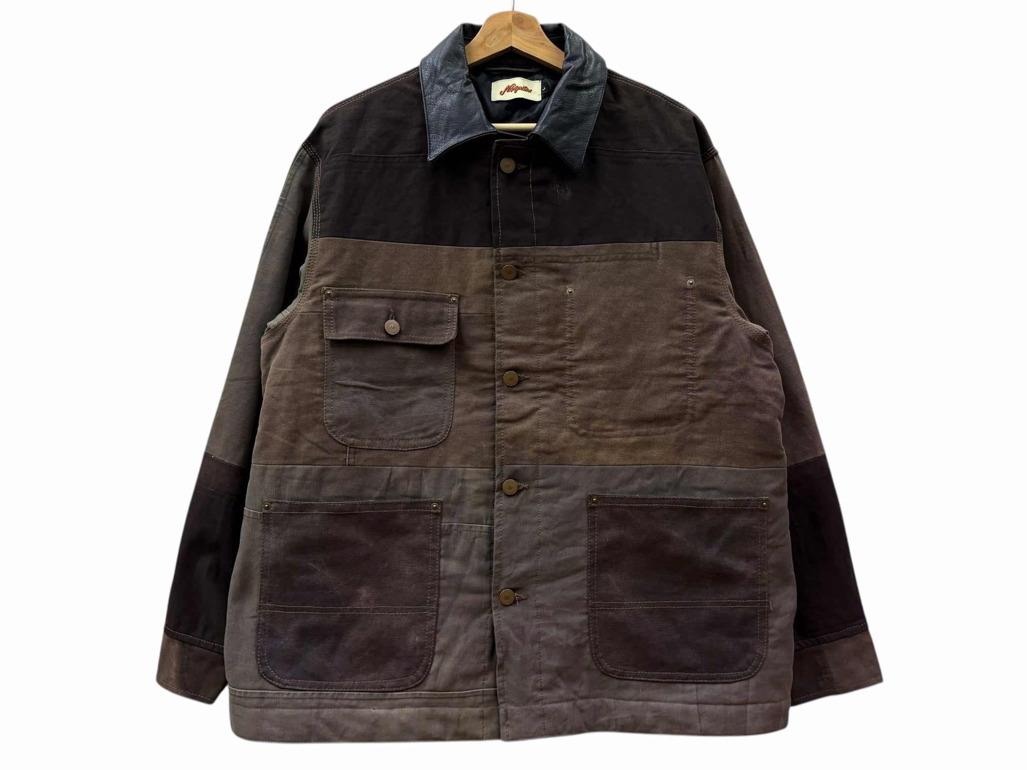 ダメージのあるダック生地に上質なレザー襟という