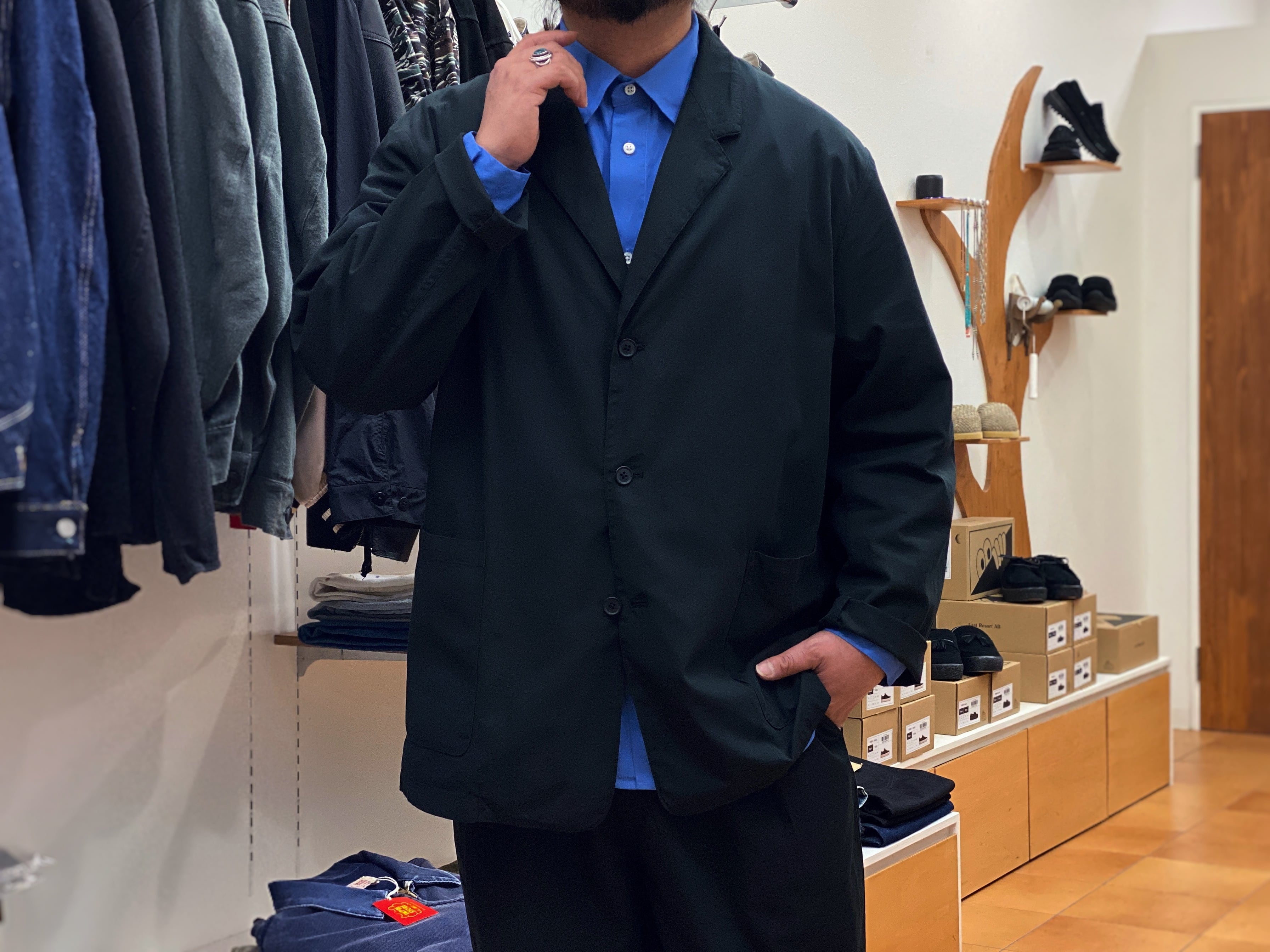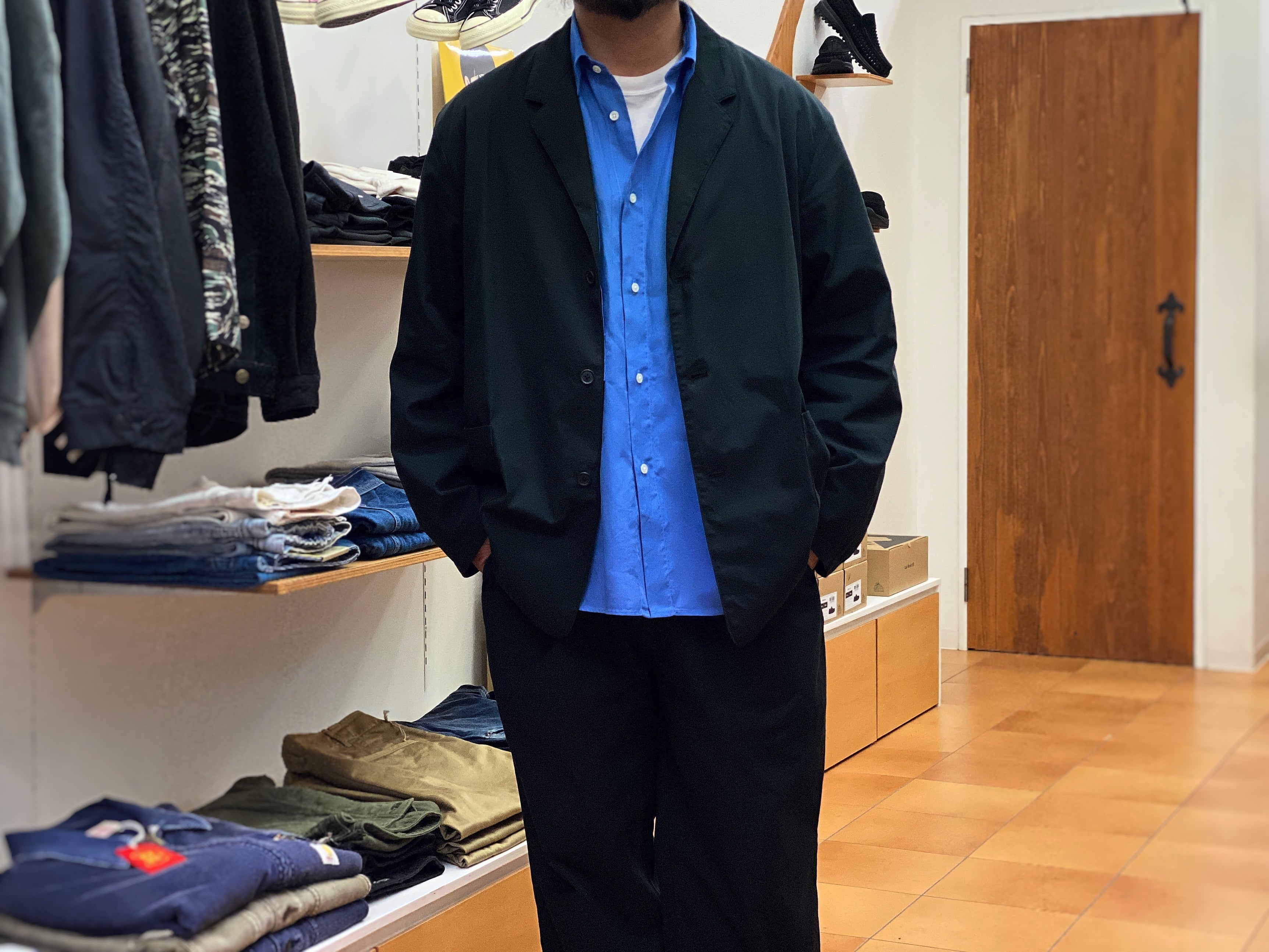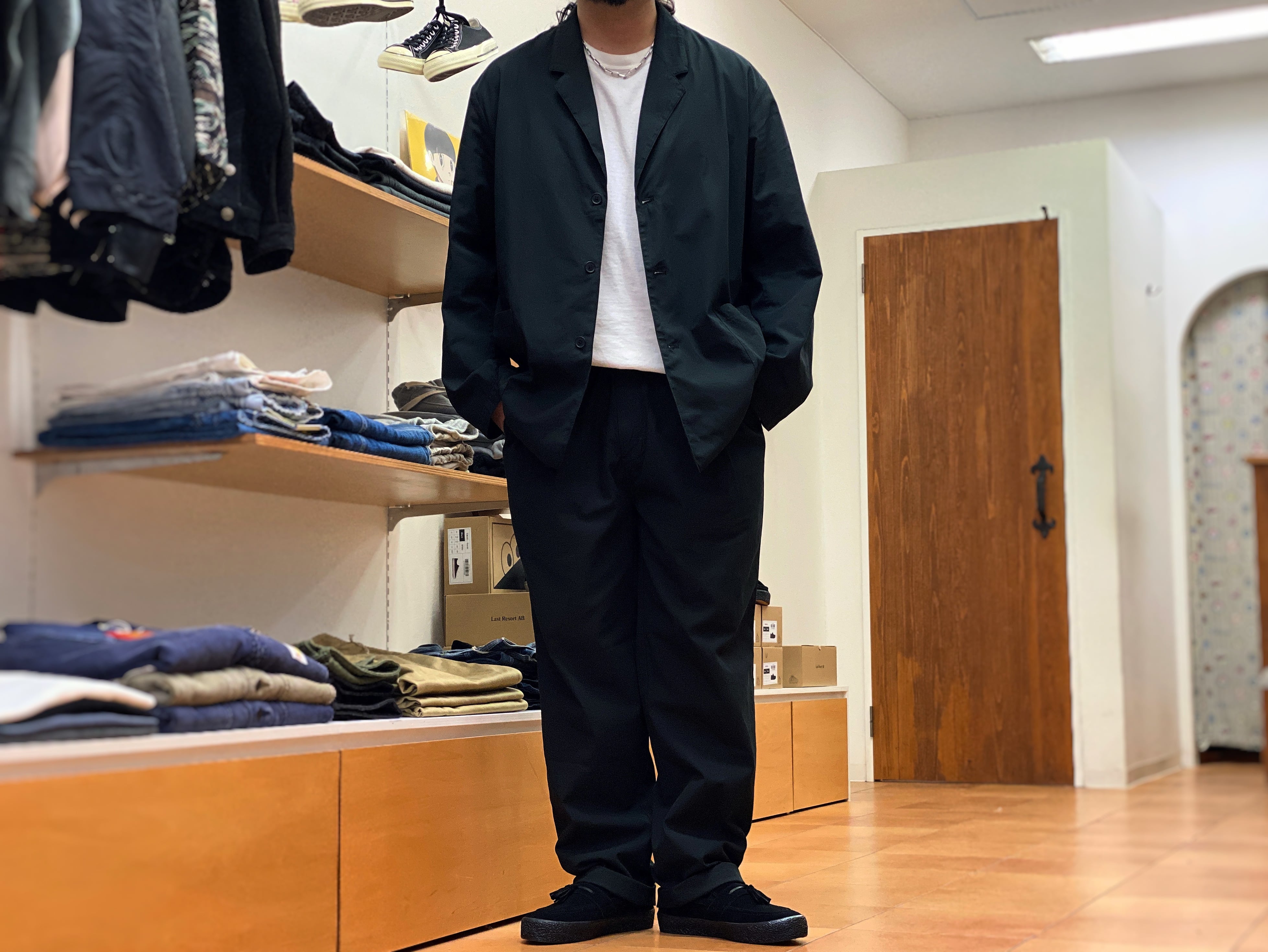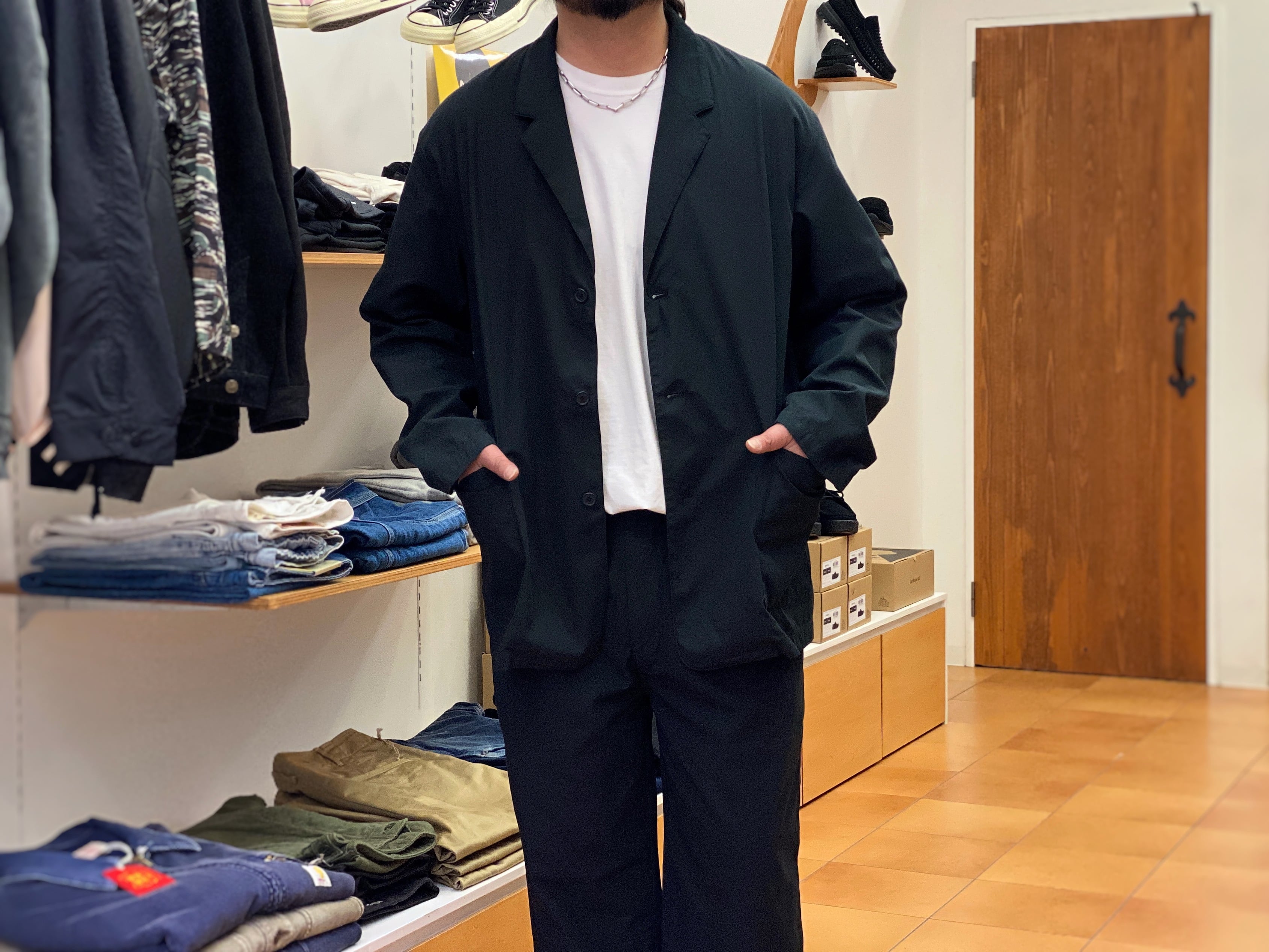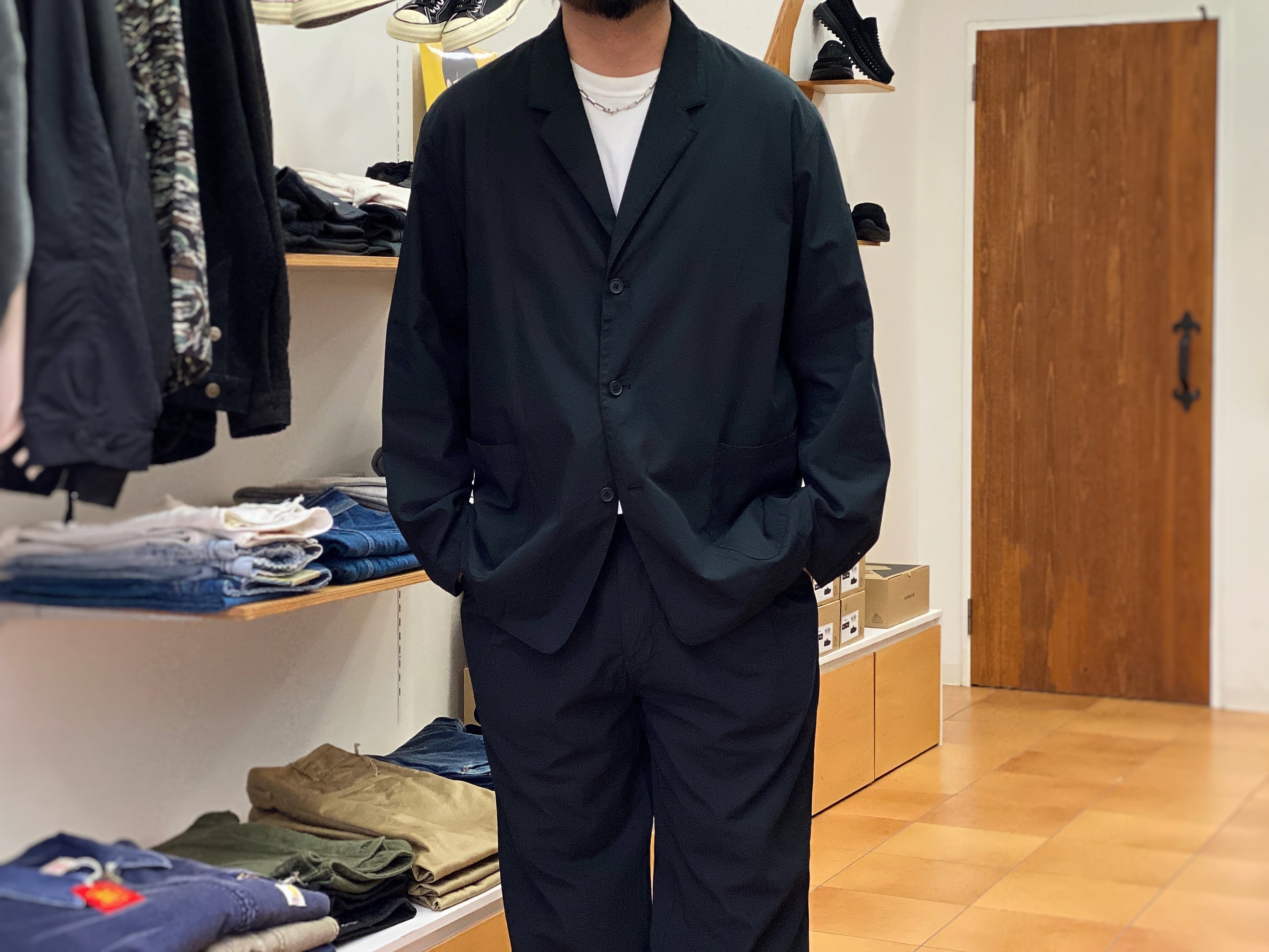 【STILL BY HAND】Garment Dye Relaxed Jacket & 2tuck Easy Pants (ink black)