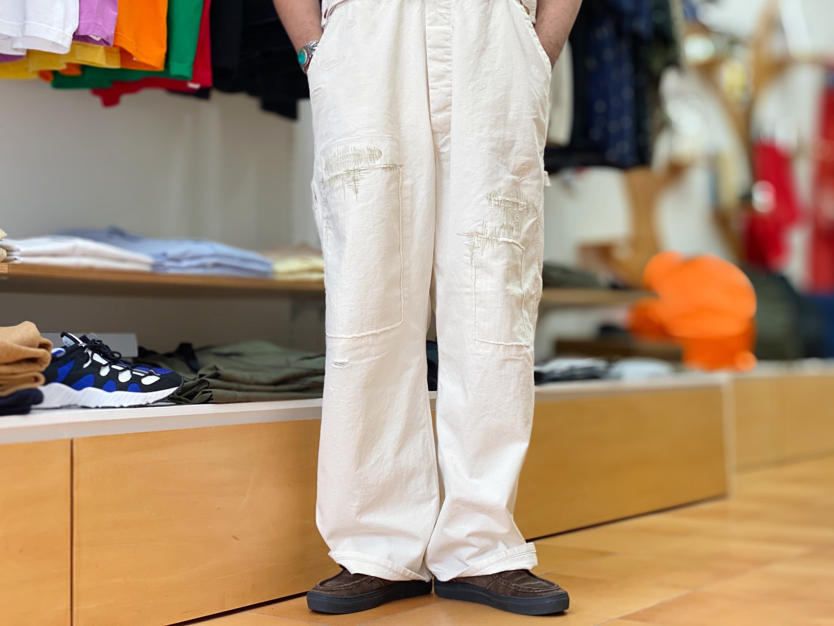 着用を繰り返し破れた部分はミシンで補修。