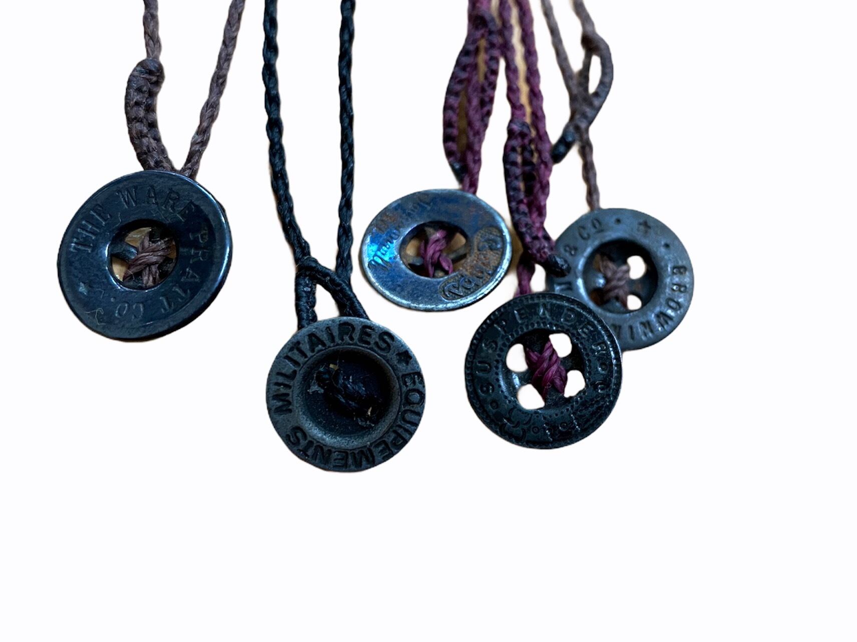 蝋引きの紐とヴィンテージボタン。