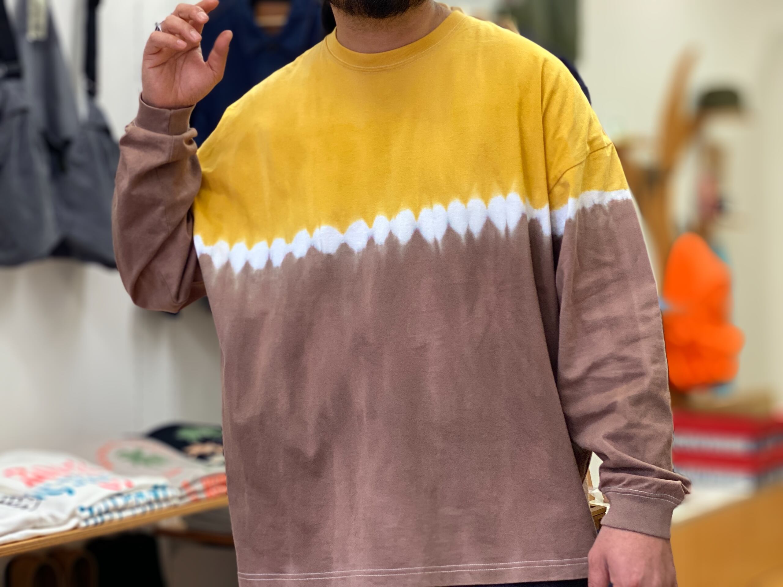 真っ白のロンTを上下別のカラーで染め上げ、